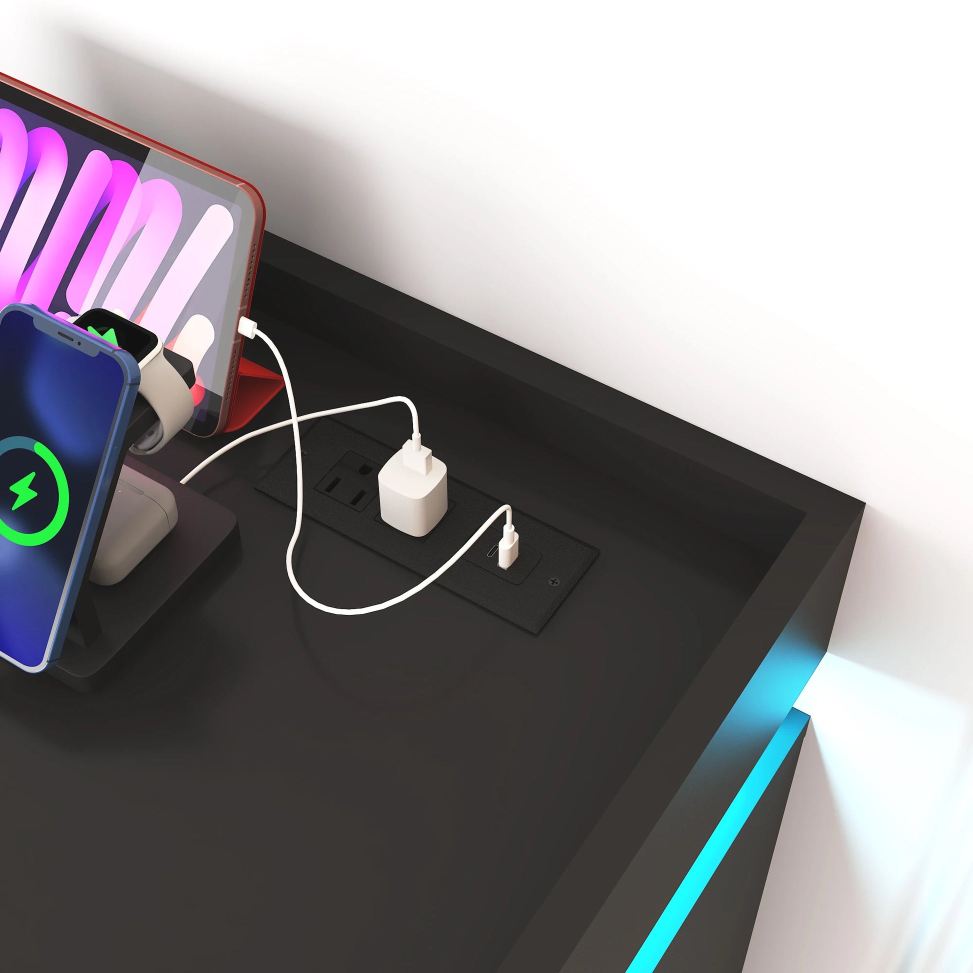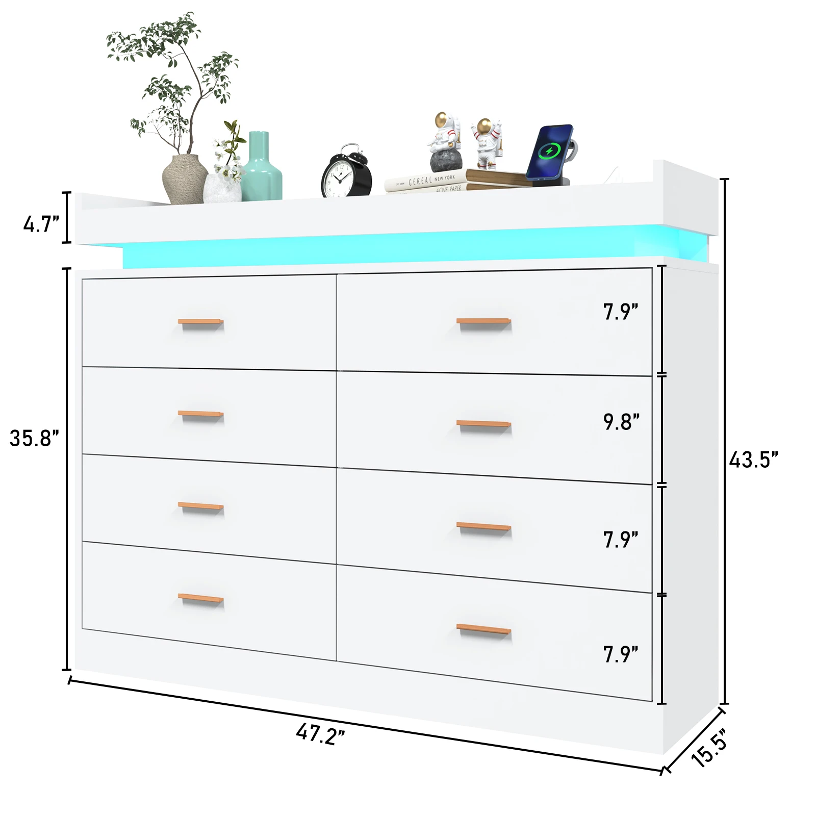 Stylish and Contemporary Design: With its modern style and sleek appearance, this dresser adds a touch of elegance to any room. The LED light strip on the top adds a stylish and unique feature, creating a warm and inviting atmosphere.