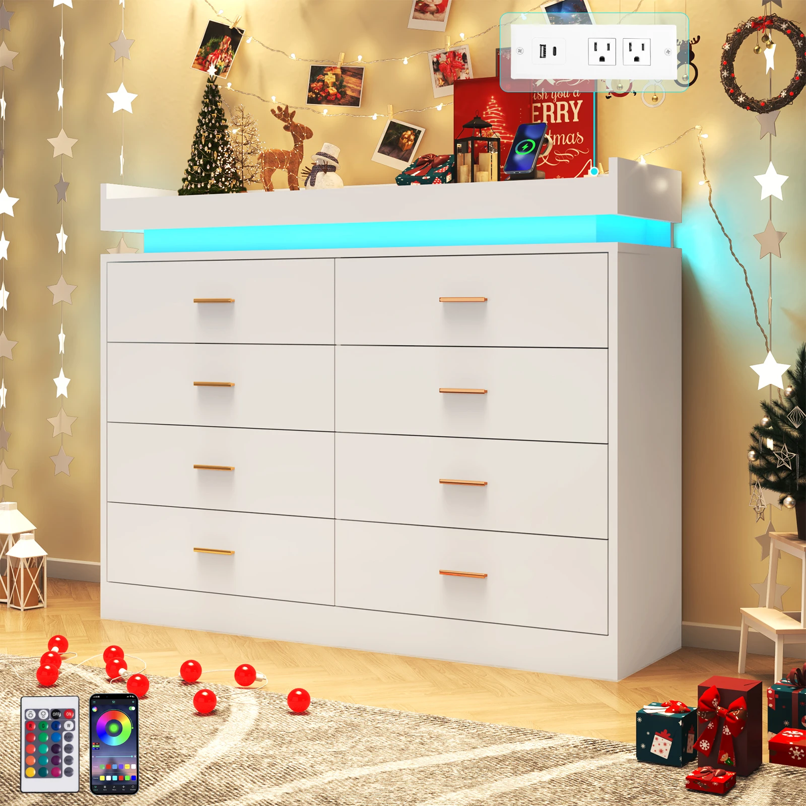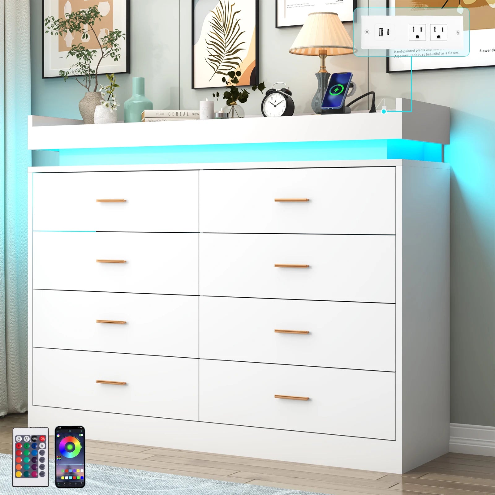 8 Drawer Dresser with LED Light, Modern