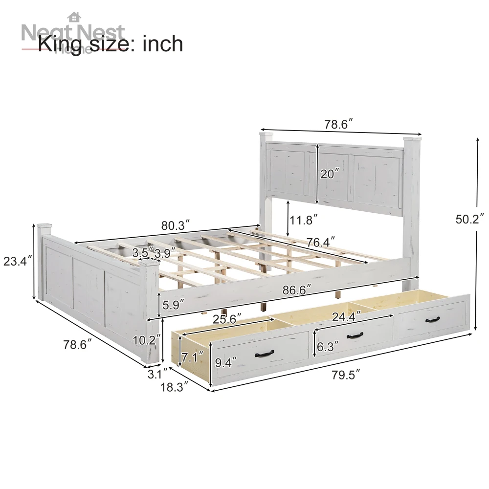 - Extra Storage Space: This bed also maximizes your storage giving you 3 standard drawers on one side for your extra belongings.You can put the drawer on any side you need.