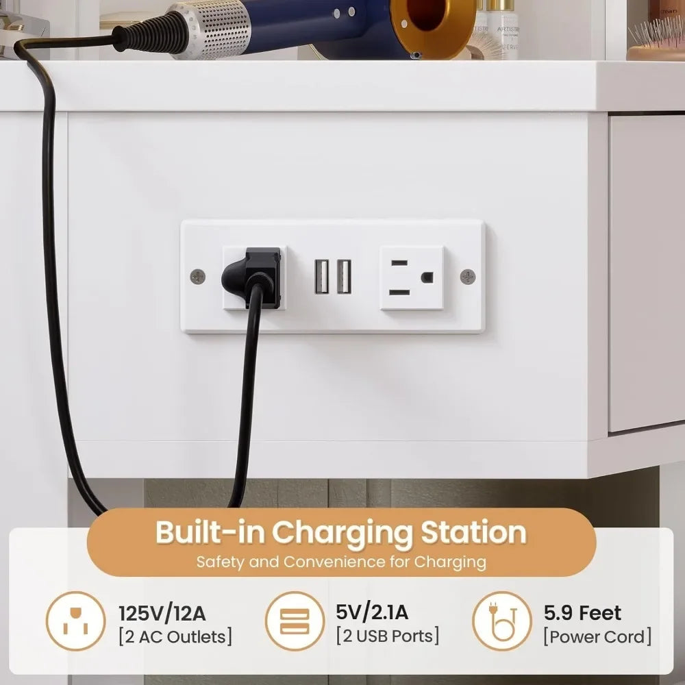【Built to Last & Ultimate Convenience】This vanity desk is built to last with premium materials and craftsmanship.Every detail is designed to simplify your daily routine, so you can look and feel your best without any stress.If you have any questions, do reach out and our support team will give you satisfied solutions.